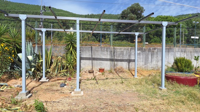 The final structure is 5.4m wide, and the top bars are 4.2m from front to back. On top of this will be the sloping frame designed for the panels.